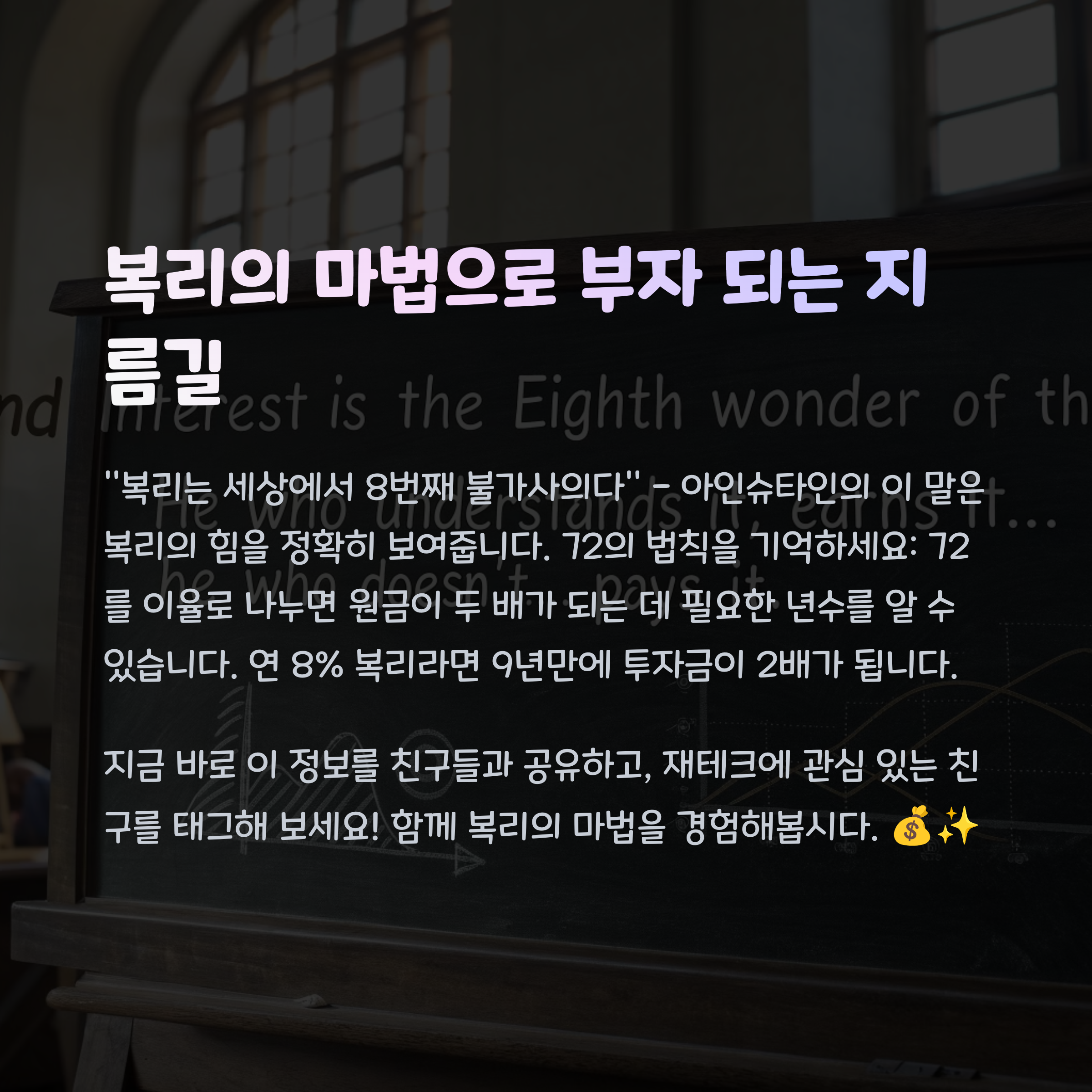 | 복리 이자 계산기 없이도 쉽게! 72의 법칙으로 미래 자산 예측하기 (0) | 2025.03.27 |