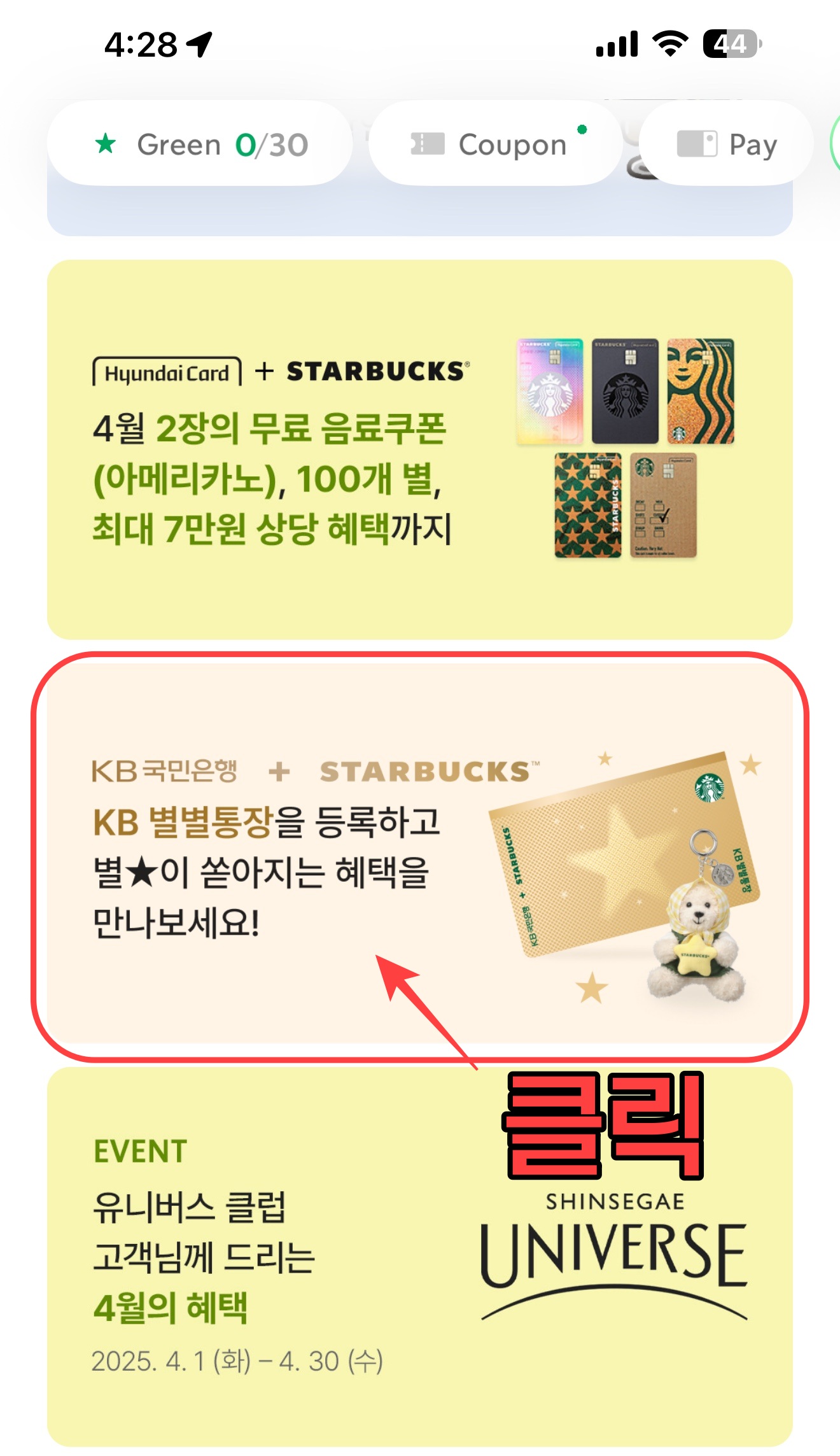 KB별별통장은 단순한 입출금 계좌가 아니에요. 최대 연 2.0% 금리를 제공하며, 월 50만 원 이상 입금 시 스타벅스 아메리카노 쿠폰도 받을 수 있죠. 여기에 스타벅스 앱을 통한 간편결제까지 연동하면 리워드 별도 추가 적립 가능!