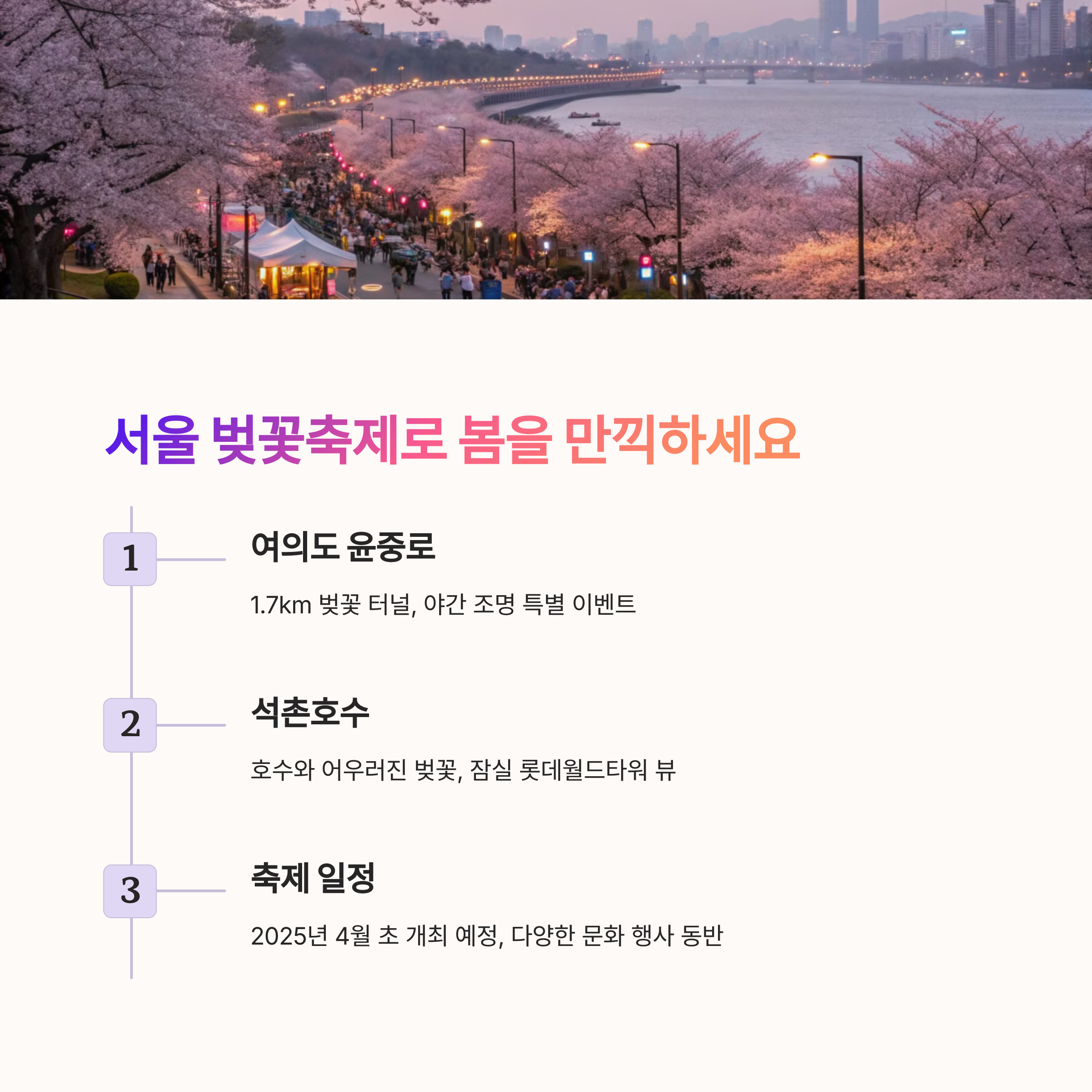 특히 경주제주는 올해 벚꽃이 가장 먼저 만개하며 많은 관심을 받고 있는데요, 이 두 지역의 대표 명소부터 서울의 축제 정보까지 꼼꼼하게 정리해드릴게요.